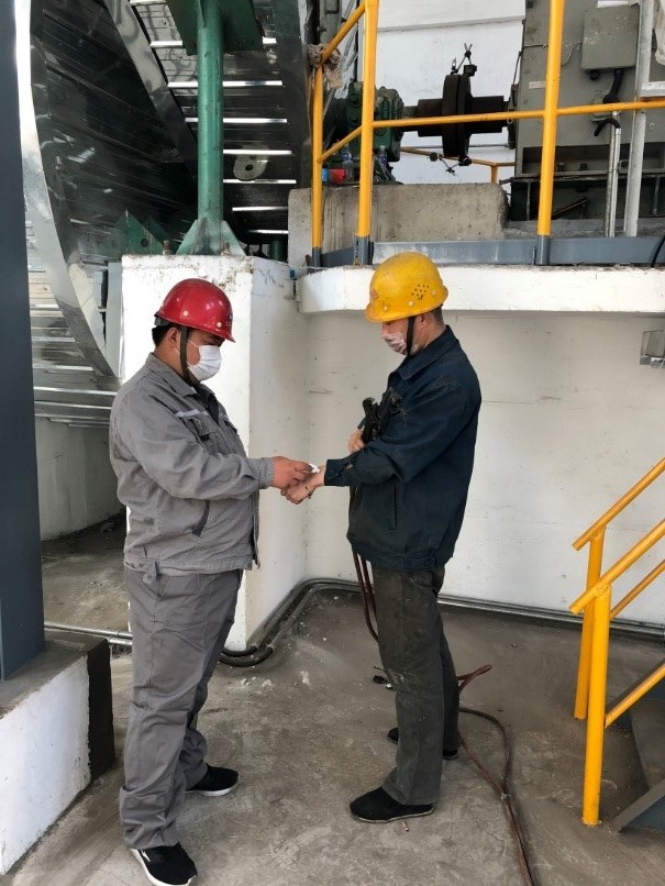 河南金马项目部:由于河南毗邻湖北,因此疫情严重,防控措施甚为严厉。为确保项目顺利投产,项目经理李铁力尽职尽责,积极与业主沟通复工事宜,配合办理复工手续,为了能确保顺利复工制定了分类返岗策略,做好施工人员健康状况排查登记,确认施工人员健康后方可返岗。疫情期间,现场设置单独的防控检查点,全力做好疫情排查工作,提前统计、购置、储备所需的口罩、消毒剂、手套等防疫物资,定时排查库存量,确保每一名进场作业人员均能按规定佩戴口罩,定期排产,受到了业主的高度赞扬。