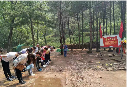 6月27日下午,党员及积极分子来到黄崖洞缅怀烈士。黄崖洞沟壑纵横、断壁如削,位于山西省黎城县城北45公里东崖底镇下赤裕村西北的深山之中,既是优美的自然景区又是中外人士想往的革命战争圣地。1939年7月,八路军总部兵工部奉朱德总司令和左权副总参谋长之命,将设在榆社县韩庄村的总部修建所移到黄崖洞,扩建为当时华北敌后我军最大的兵工厂。