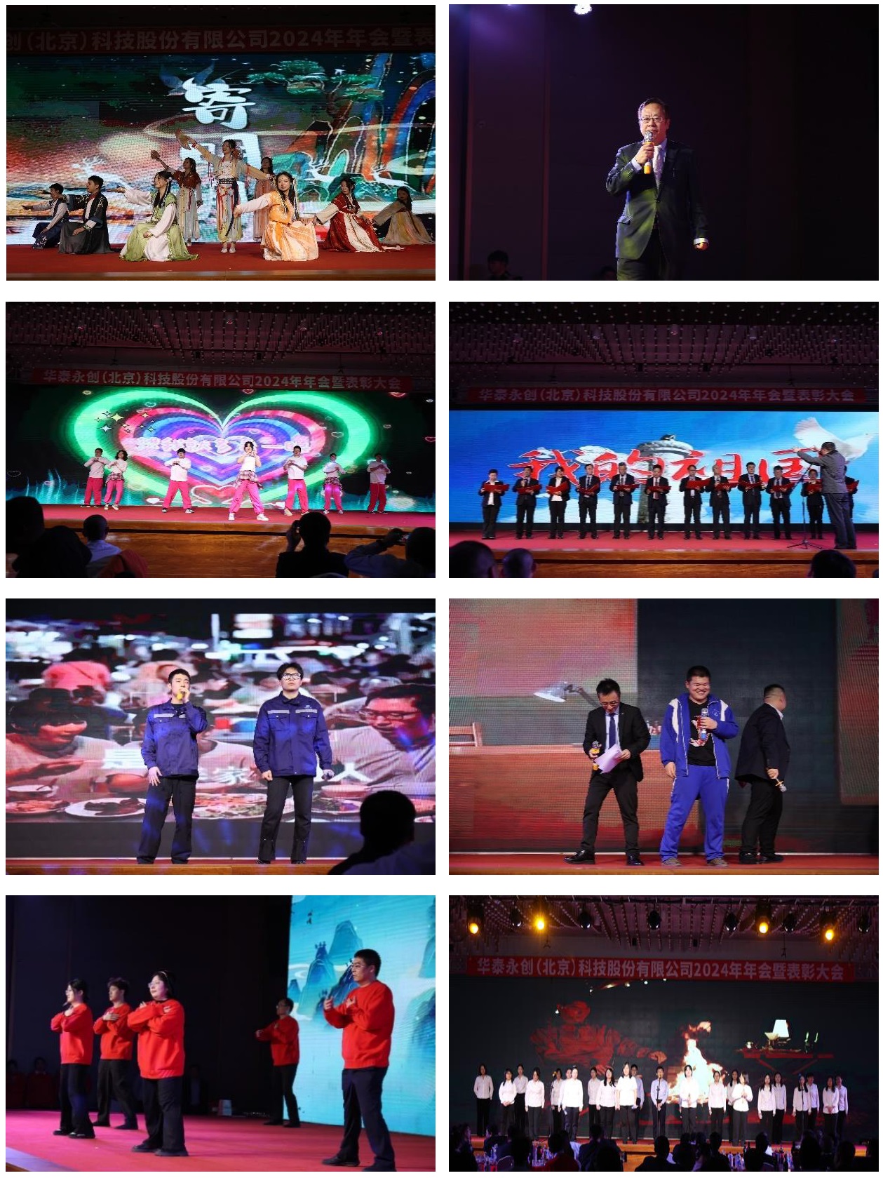 欣赏着绝美的舞姿,聆听着动人的音乐。一众领导也难耐寂寞,纷纷登上舞台,献上一首《我的祖国》(演唱者:徐列、韩冬、董兴宏、邵丰、宋明江、李福权、张晓光、薛改凤、郑荷蕾、史学峰、王娜、王双平、付永顺),其饱满浑厚的嗓音,唱出了他们对祖国的热爱。一曲《无名的人》(演唱者:栾雯、张文鑫),深沉的旋律、细腻的歌词,表达着无数默默付出的人的心声,诉说着他们的坚强和不屈的毅力。小品《批作文》(表演者:王新豪、张圣禹、王俊生)以幽默的角度讲述着童年的回忆。歌舞《如愿上春山》(表演者:黄荷、王东凯、管心颖、张坤有、魏本见、蒋洪政),优美的旋律和轻快的节奏,在表达着对美好景象向往的同时,唤醒着内心深处的青春与活力。歌曲《如愿》(张美美、王俊杰、吴薇、田梓轩、王麒、王玉库)更是传递着积极向上的情感,充满了对未来的期望与追求。最后一曲《不要慌太阳下山有月光》(演唱者:孙文彬、石巧囡、霍海雯、蔡丹、赵英彤、陈悦、孟文、康健、佟津、王奇、贾秀、马春雨、王欣悦、李晨、张可欣、张家翊、付海亮、邹晓晖、葛玉洁、杨宁、赵楠楠、杨丽云、胡蕙、贾楠)将情感表达的淋漓尽致,众人齐唱,在黑幕里挥舞着蜡烛,带给人无限温暖与美好,治愈了一个个孤独漂泊的心灵。以此结束我们的联欢晚会,仿佛诉说着华泰就是那温暖的家,就是最好的归宿。