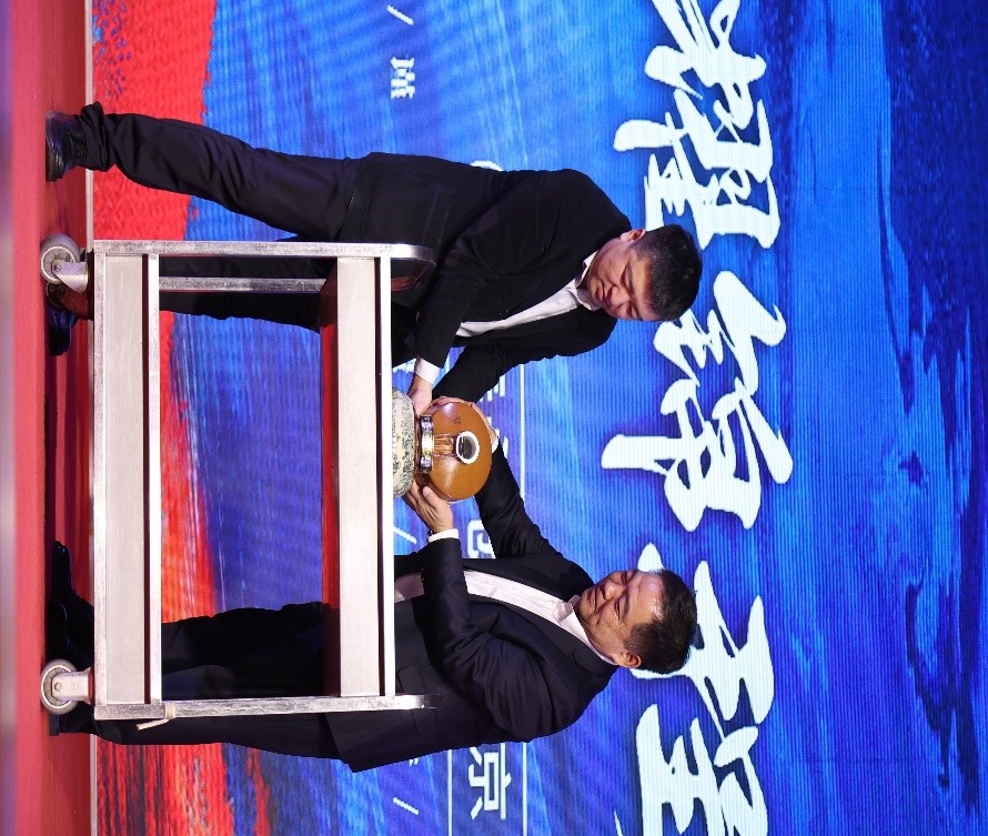 随着晚会的结束,伴随着激情澎湃的《万宝路进行曲》,开酒仪式由董事长徐列隆重开启。百坛原浆汾酒,一年只开一坛,寄寓着我们华泰源远流长,铸造百年传承的梦想。正所谓新篇开启,酒香四溢。在这浓郁的酒香中,全员共饮,举杯同欢。庆祝过往的辉煌,开启新年的篇章!